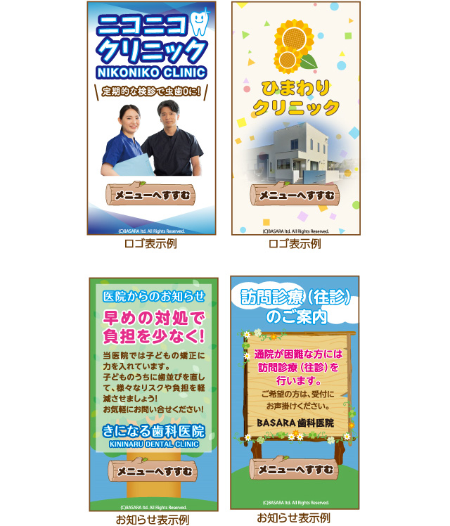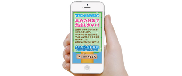 QRコードを読み取って最初に表示されるTOPページ。「きになるえほん」を見る前に必ず表示するTOPページを使って、顧客様にご案内をお知らせすることができます。お得な情報や注意事項、これからの日程など、顧客様とのコミュニケーションとしてもご利用いただけます。